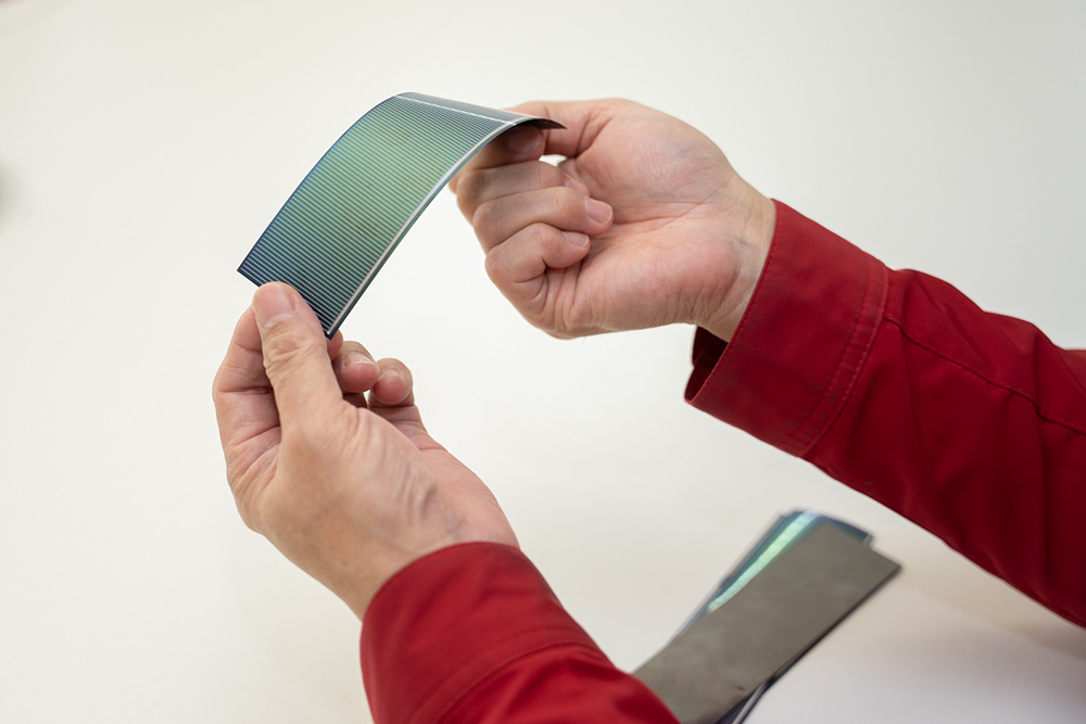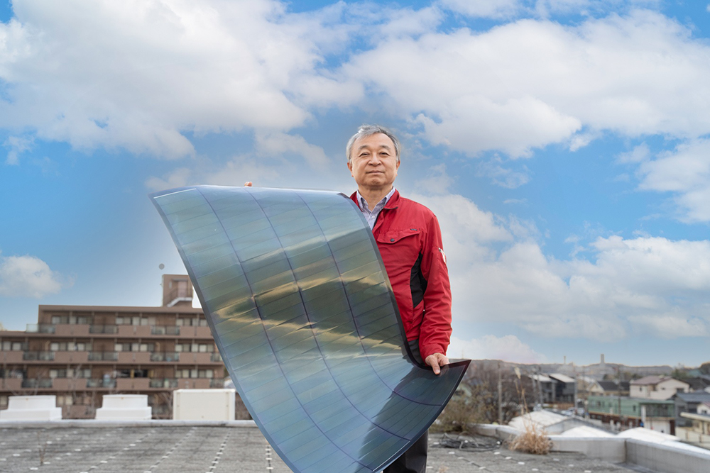 同社が開発するのは、チタン箔を基板とした極薄の太陽電池である。軽く、曲げることも可能な構造により、建物や車両などこれまで設置が難しかった場所への応用が期待されている。同社の研究開発は成果の発表ではなく、実用化を前提としている点に大きな特徴がある。短期的な流行や制度に左右されるのではなく、耐久性と実装性を重視しながら、次の社会にとって意味のあるエネルギー技術を形にしようとするその姿勢は、地域から生まれる技術の新たな在り方を示している。